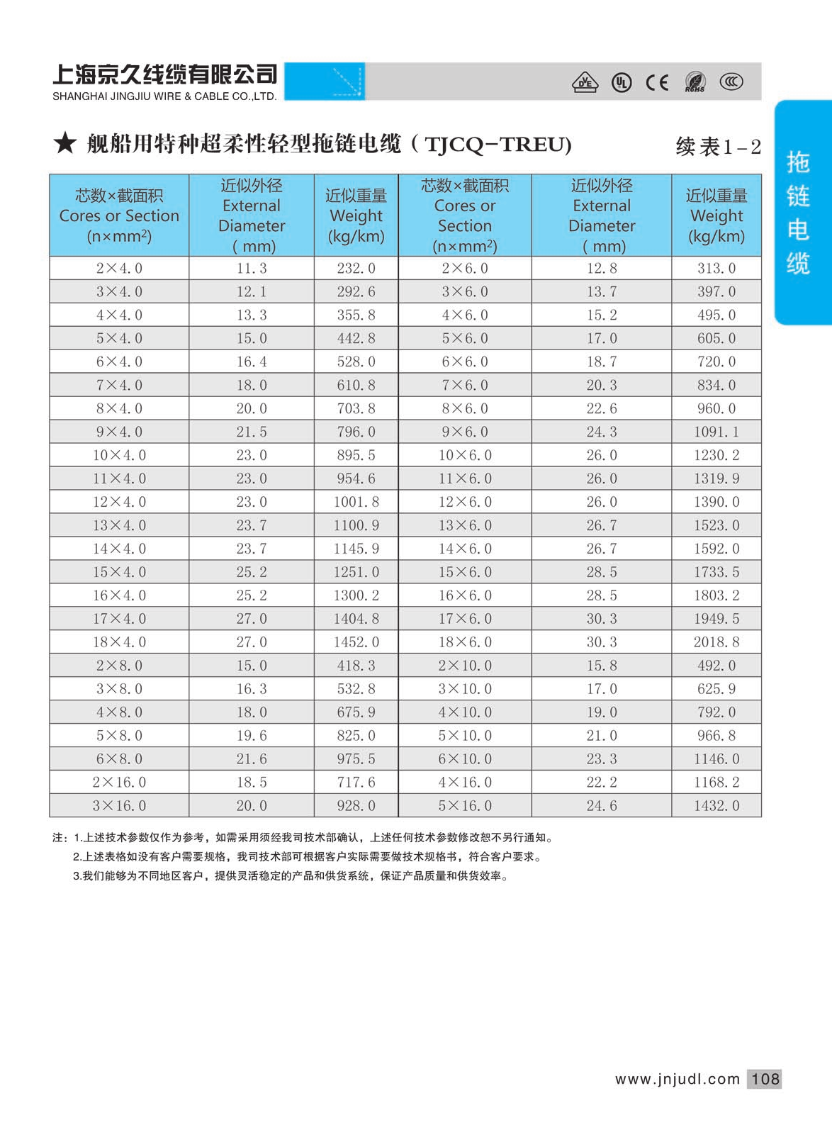 ●使用溫度范圍:-40℃至+100℃(移動安裝)彎曲半徑為:5×D